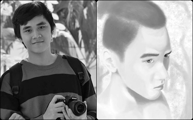 | Ngô Đoàn Dũng và chân dung tự họa. Dũng đã dành học bổng 40% học phí của Arena Multimedia khi đang là sinh viên Đại học Xây dựng và hiện tại đang học song song hai trường. |
