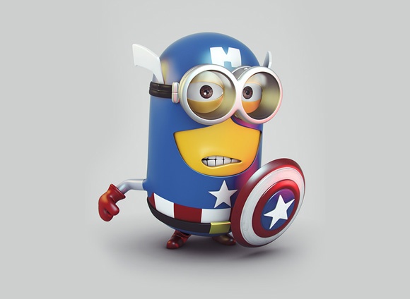 | Chú Minions chế theo hình tượng siêu anh hùng Captain America. |