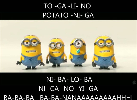 Các chú Minions trong Kẻ cắp mặt trăng có một bài hát riêng cũng rất đặc biệt. Dân mạng Việt cũng nhanh chóng tận dụng nó để chế ra nhiều phiên bản parody khác nhau. Đây hiện vẫn là một trào lưu đang gây sốt và lan tỏa khắp mọi khía cạnh của đời sống teen Việt.