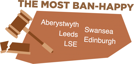 Theo thống kê, trong 3 năm qua, các trường ở Anh ban hành tất cả 148 lệnh cấm, bao gồm 125 lệnh cấm do Hội Sinh viên đặt ra và 23 lệnh riêng của mỗi trường. Các lệnh cấm thường liên quan báo chí (30 lệnh), âm nhạc (25 lệnh), câu lạc bộ thể thao và đoàn hội (20 lệnh).