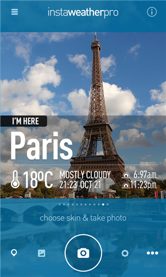 Khác với theme màu xanh coban của Instaweather, Ciel mang đến cảm giác yên bình, êm mát với màu xanh da trời đáng yêu cho các cô nàng thích thay đổi nhưng vẫn muốn giữ nguyên chức năng mạnh mẽ của ứng dụng. Trẻ trung hơn Insta weather, Ciel không chỉ cho các nàng cập nhật vị trí, nhiệt độ mà các nàng còn có thể chia sẻ món ăn, thức uống và phong cách thời trang của mình lên trên bức hình.