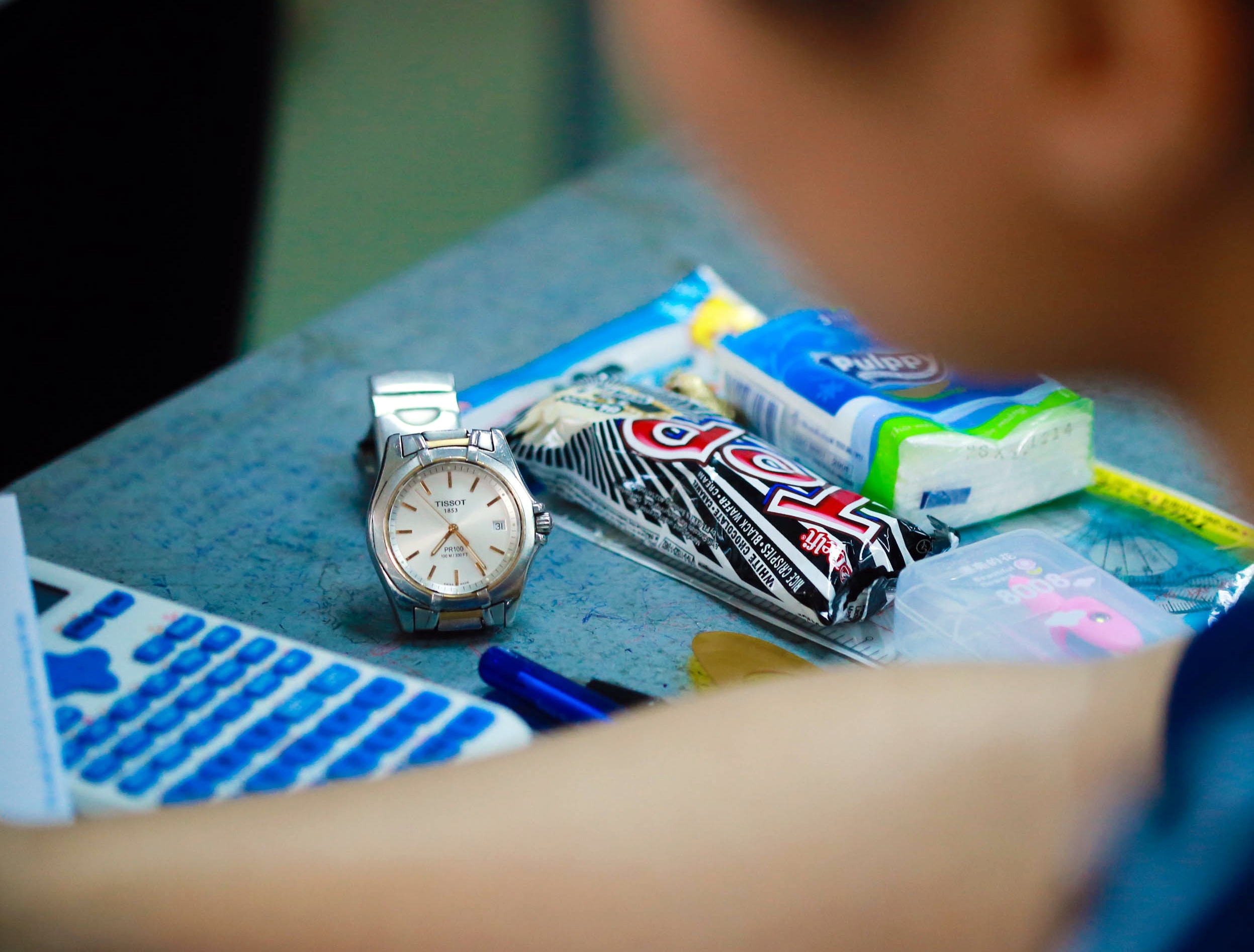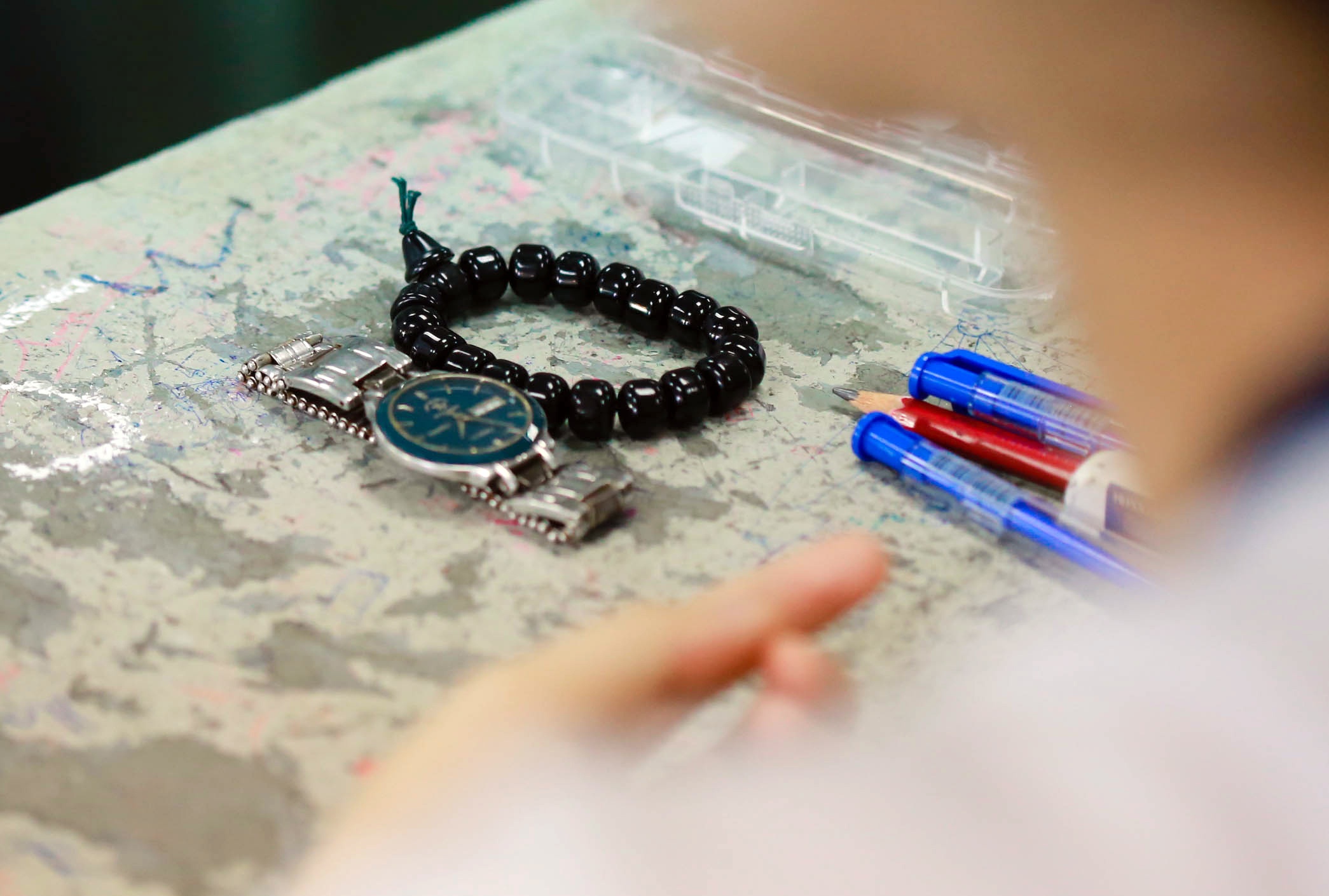 Bên cạnh những vật dụng cần thiết được phép mang vào phòng thi, một số thí sinh còn đem vòng tay, đồng hồ... người thân tặng để cầu may.