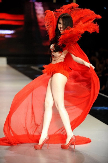 | Ngọc Trinh làm vedette phần trình diễn bộ sưu tập na ná nội y. |