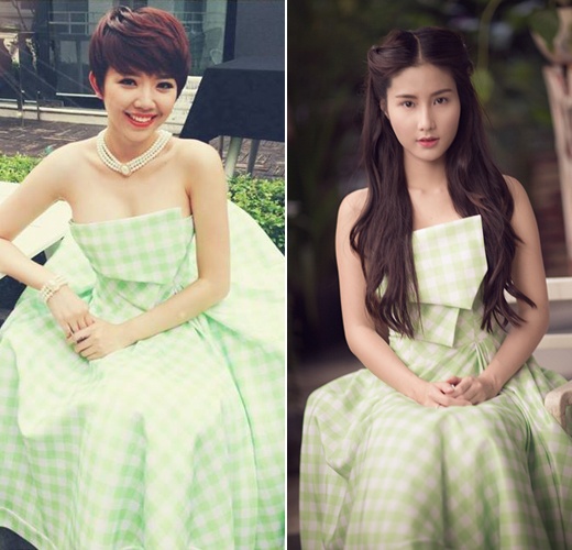| Tuy nhiên, mẫu váy đã được Linh Chi mặc từ cách đây vài tháng. Dù khác biệt về màu sắc nhưng đường nét thiết kế lại giống nhau như đúc. |