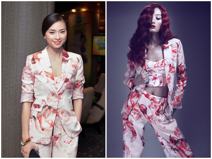 Ngô Thanh Vân và Lê Thúy ''đụng hàng'' trong một thiết kế mùa thu lãng mạn của Đỗ Mạnh Cường. Diện trang phục hợp xu hướng, cả hai đều toát lên vẻ đẹp đối lập. Trong khi Ngô Thanh Vân được khen ngợi là nền nã, thanh lịch thì Lê Thúy nhận được đánh giá là cá tính và mạnh mẽ. Thiết kế tinh tế với cách phối đồng bộ từ quần, áo và vest, họa tiết in hoa ửng màu hồng đỏ lãng mạn.