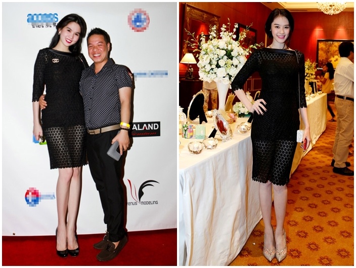 Mới đây, người đẹp Linh Chi vô tình diện lại một mẫu váy mà ''nữ hoàng nội y'' diện từ trước đó 1 năm khi cô tham dự một sự kiện diễn ra tại Mỹ. Không chỉ đụng hàng váy áo, á hậu Phụ nữ qua ảnh còn đụng cả phụ kiện clutch. Hai người đẹp đều sở hữu vóc dáng cân đối, thu hút ánh nhìn, nhưng việc mặc lại không giúp Linh Chi tạo ấn tượng. Ngọc Trinh ghi điểm cộng nhờ sự thanh lịch với thiết kế mới mẻ ở thời điểm 1 năm trước.