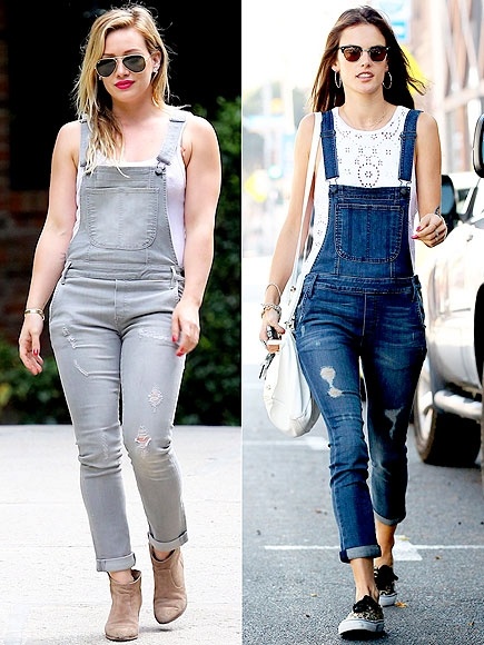 | Mix yếm bò cùng tanktop hoặc áo thun trắng là gợi ý của "thiên thần VS" Alessandra Ambrosio và cô nàng Hilary Duff. |