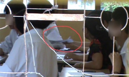 | Ảnh tiêu cực trong thi cử tại THPT Quang Trung (Hà Nội). Ảnh:Cắt từ clip. |