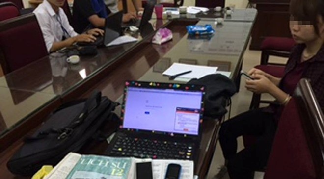 Trưa 4/7, ông Mai Văn Trinh - Cục trưởng Cục Khảo thí và Kiểm định Chất lượng Giáo dục - Bộ GD&ĐT cho biết, nhận được thông tin trên trong giờ làm bài môn Lịch sử. Những người này ngồi ở quán cà phê đọc bài làm vào phòng cho thí sinh tại Cao đẳng Sư phạm Trung ương (phố Hoàng Quốc Việt, Hà Nội). Đây là điểm thi của Học viện Kỹ thuật Quân sự (cụm thi số 4).