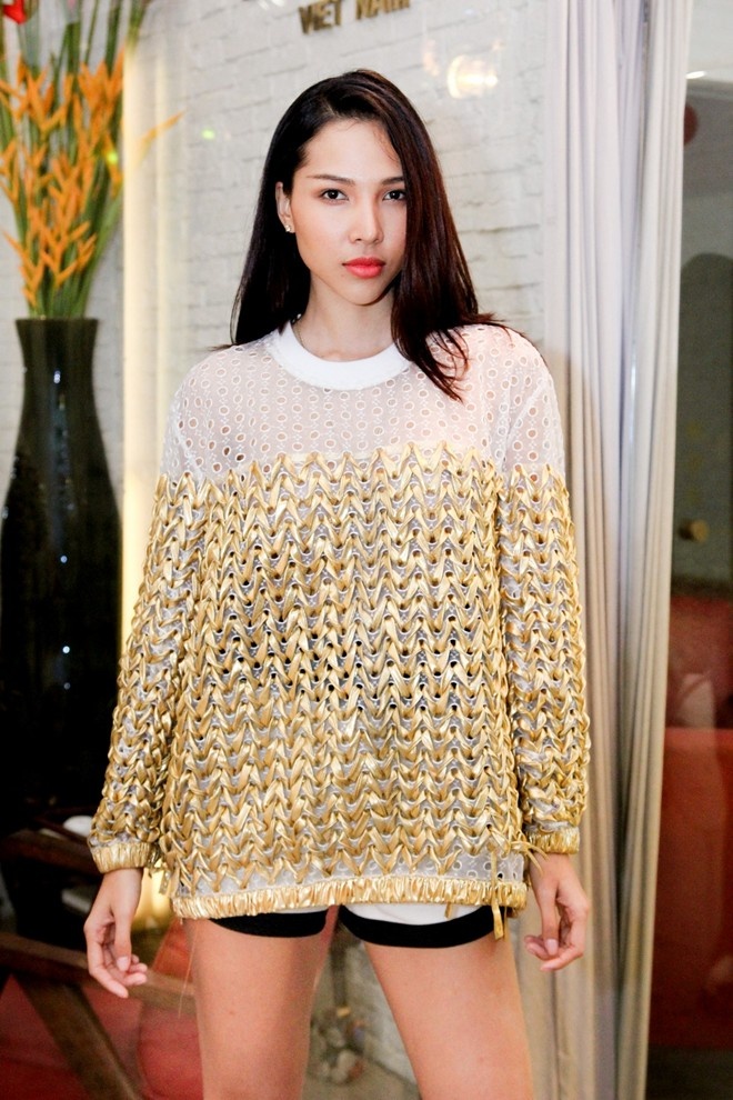 Thế nhưng, vào cuối năm ngoái - 2013, nữ người mẫu Minh Triệu cũng từng sở hữu một mẫu áo tương tự. Mẫu áo phù hợp với phong cách mạnh mẽ, cá tính của Minh Triệu, đồng thời lại toát lên vẻ tinh nghịch, trẻ trung của Văn Mai Hương. Thiết kế của Công Trí được đánh giá cao về sự linh động, dễ dàng ăn ý với hai phong cách đối lập.