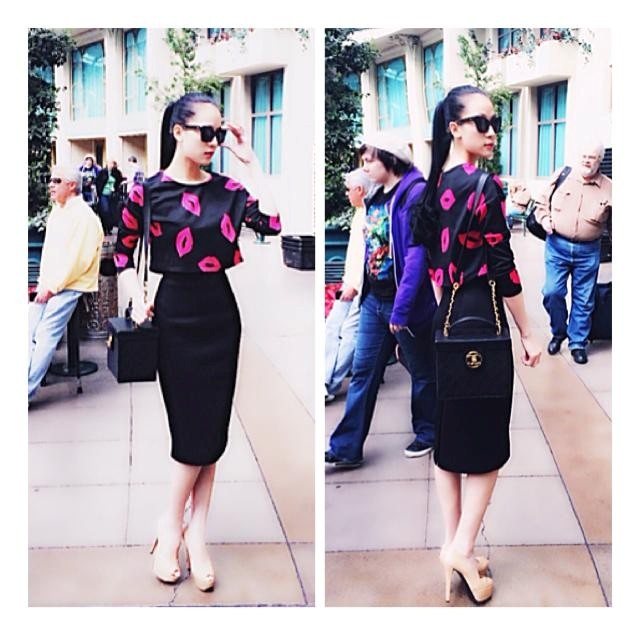 Tuy nhiên, kiểu áo lại được Hà Hồ lăng xê trước đó hai tuần khi bà mẹ một con có buổi giao lưu cùng các thí sinh của chương trình Nhân tố bí ẩn. Hồ Ngọc Hà được nhận xét là khá tinh tế khi phối áo ''đôi môi'' cùng chân váy loe rất nữ tính và hiện đại, thế nhưng, các tín đồ thời trang cho rằng, mẫu giày đi cùng lại không ăn nhập tổng thể bởi bông hoa đỏ đính kèm vô tình tạo thêm một điểm nhấn không cần thiết.