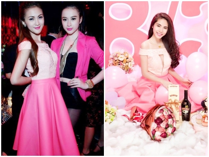 Trong bộ ảnh mới đây của Thủy Tiên, người hâm mộ phát hiện cô diện một mẫu váy mà hotgirl Kelly Tú Anh từng mặc trong tiệc sinh nhật 2013. Kiểu áo được cho là khá duyên dáng và yêu kiều, phù hợp vóc dáng và vẻ đẹp nữ tính của hot girl và nữ ca sĩ. Một số người xem nhận xét, cùng diện một mẫu váy nhưng Thủy Tiên có phần nổi trội hơn nhờ lợi thế vóc dáng đầy đặn, quyến rũ.