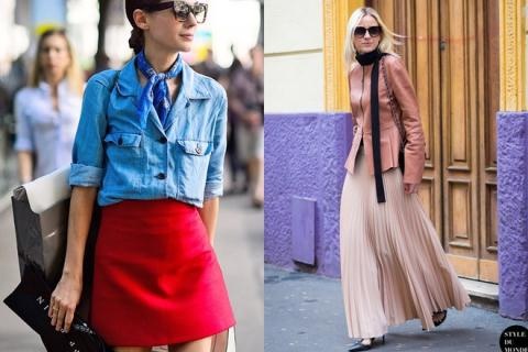 | Chân váy phá cách: Mùa thu này, các tín đồ cũng bắt gặp các loại chân váy phá cách trên đường phố. Nét đặc biệt của loại váy này được thể hiện ở màu sắc, họa tiết, kiểu dáng. Trong đó, váy quấn, váy bất đối xứng, váy xẻ đùi... được tín đồ thời trang ưa chuộng. |