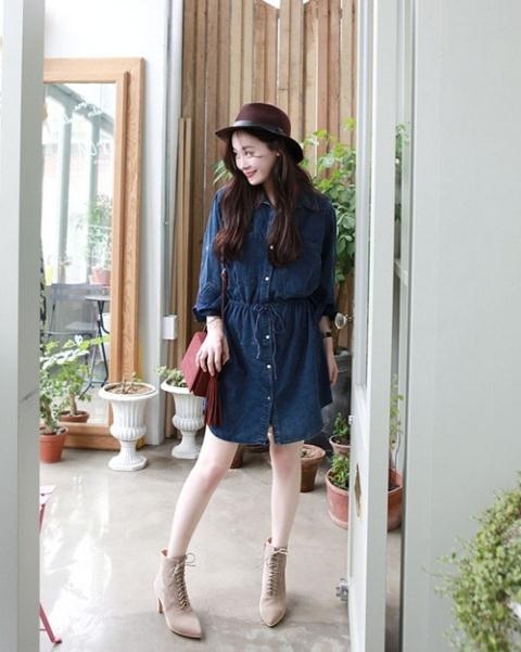 Váy liền thân denim: Những cô nàng có vóc dáng gầy, nhỏ nên chọn kiểu váy liền ngắn trên đầu gối, hoặc kiểu dài qua gối để tạo cảm giác cao ráo hơn.