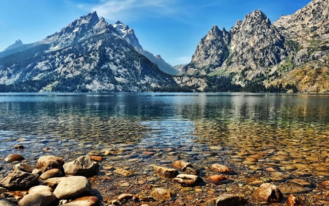 | Hồ Jenny nằm bên dưới chân núi Grand Teton thuộc tiểu bang Wyoming, miền Tây nước Mỹ. Ven hồ là những con đường mòn hẻo lánh và các tuyến đường leo núi. Mặc dù thuyền máy được phép hoạt động, nhưng mặt nước của hồ vẫn giữ được nét nguyên sơ vốn có. |