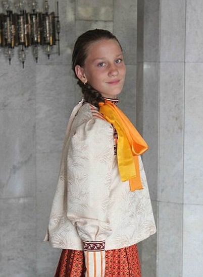 | Ca sĩ nhí Masha Kuznetsova, người Nga thường xuyên chải mascara và tô màu mắt mỗi khi lên sân khấu. |