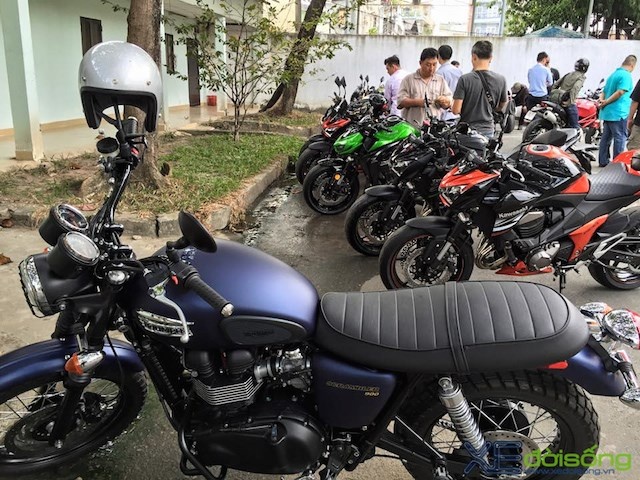 Trong số xe PKL đi đăng ký đầu tuần này, chiếc Triumph Scrambler cũng khá được chú ý vì là hàng độc màu Matt Pacific Blue (xanh nước biển mờ) đời 2014 và chủ xe cho biết đợt ở Sài Gòn dịp này chỉ có khoảng 2 đến 3 xe như vậy.