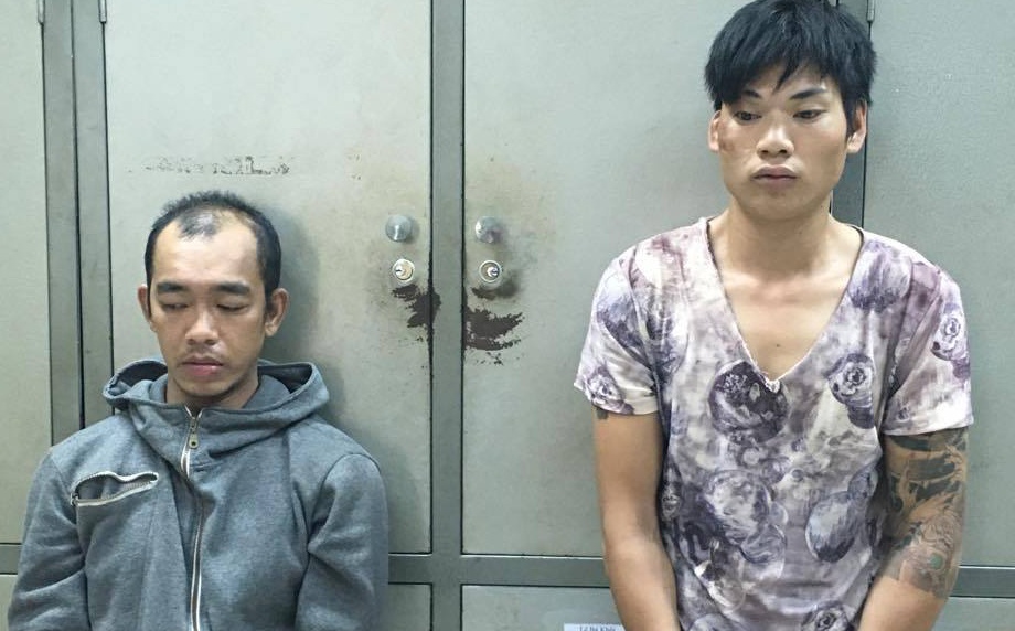 | Thanh (phải) và đồng bọn bị công an bắt giữ. Ảnh: Công an cung cấp. |