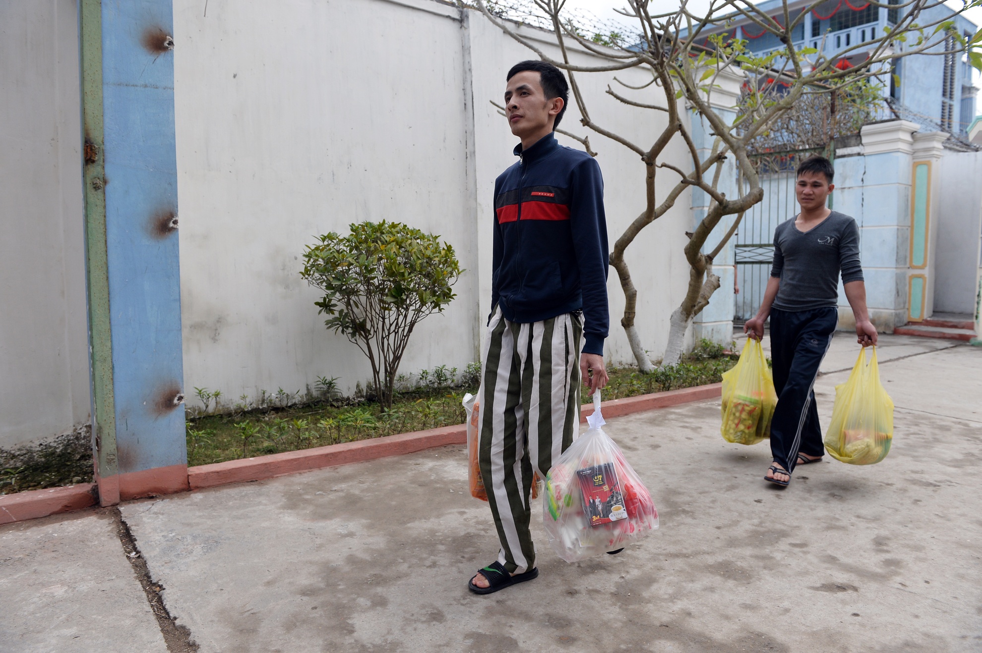 Thời điểm này những con người lầm lỗi tất bật nhận hàng Tết từ gia đình mang tới.
