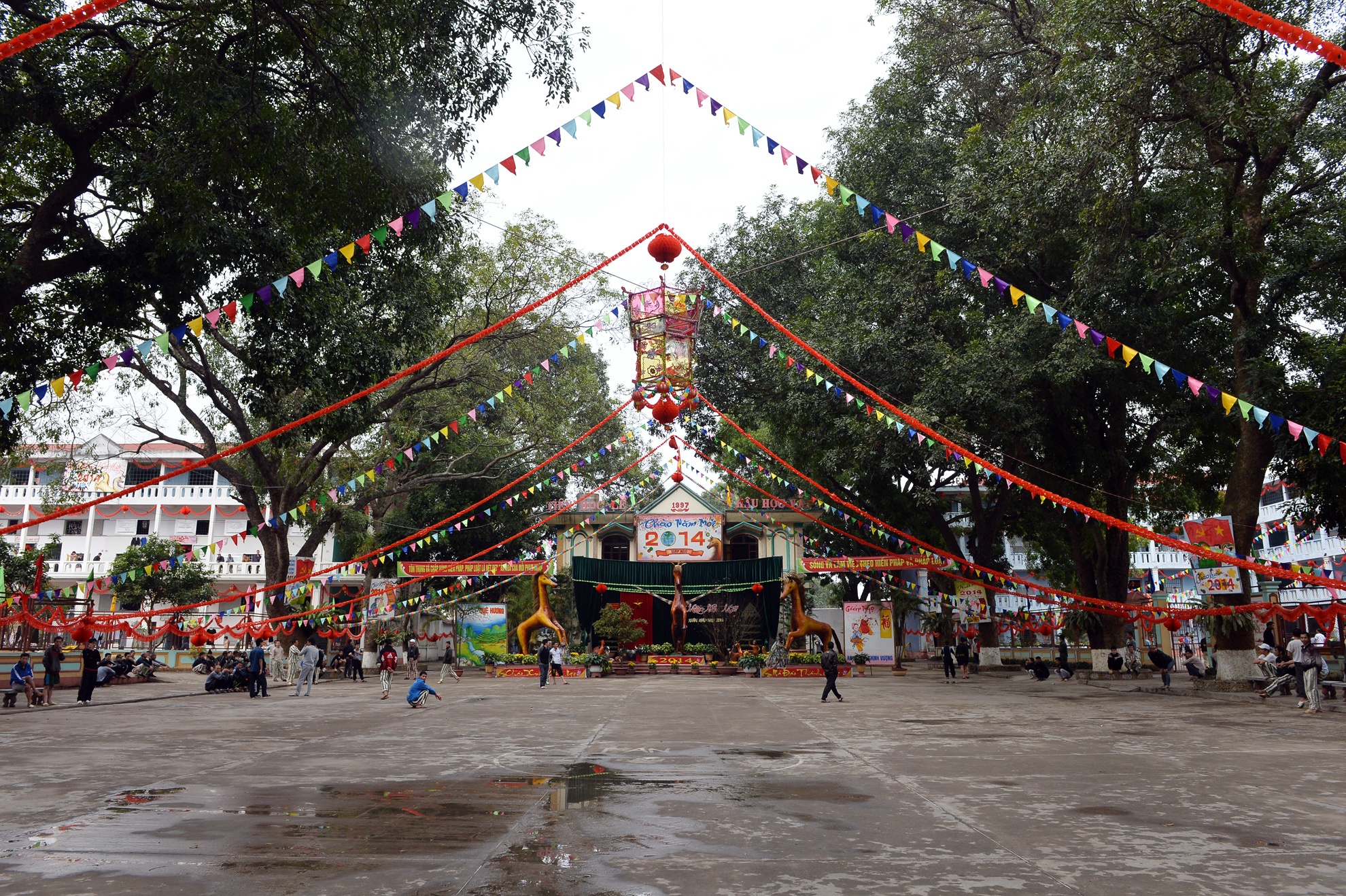 Khuôn viên phân trại 1 được chăng đèn, cờ rực rỡ. Đây cũng là nơi tổ chức các hoạt động văn nghệ, thi thố trong những ngày đầu năm mới.