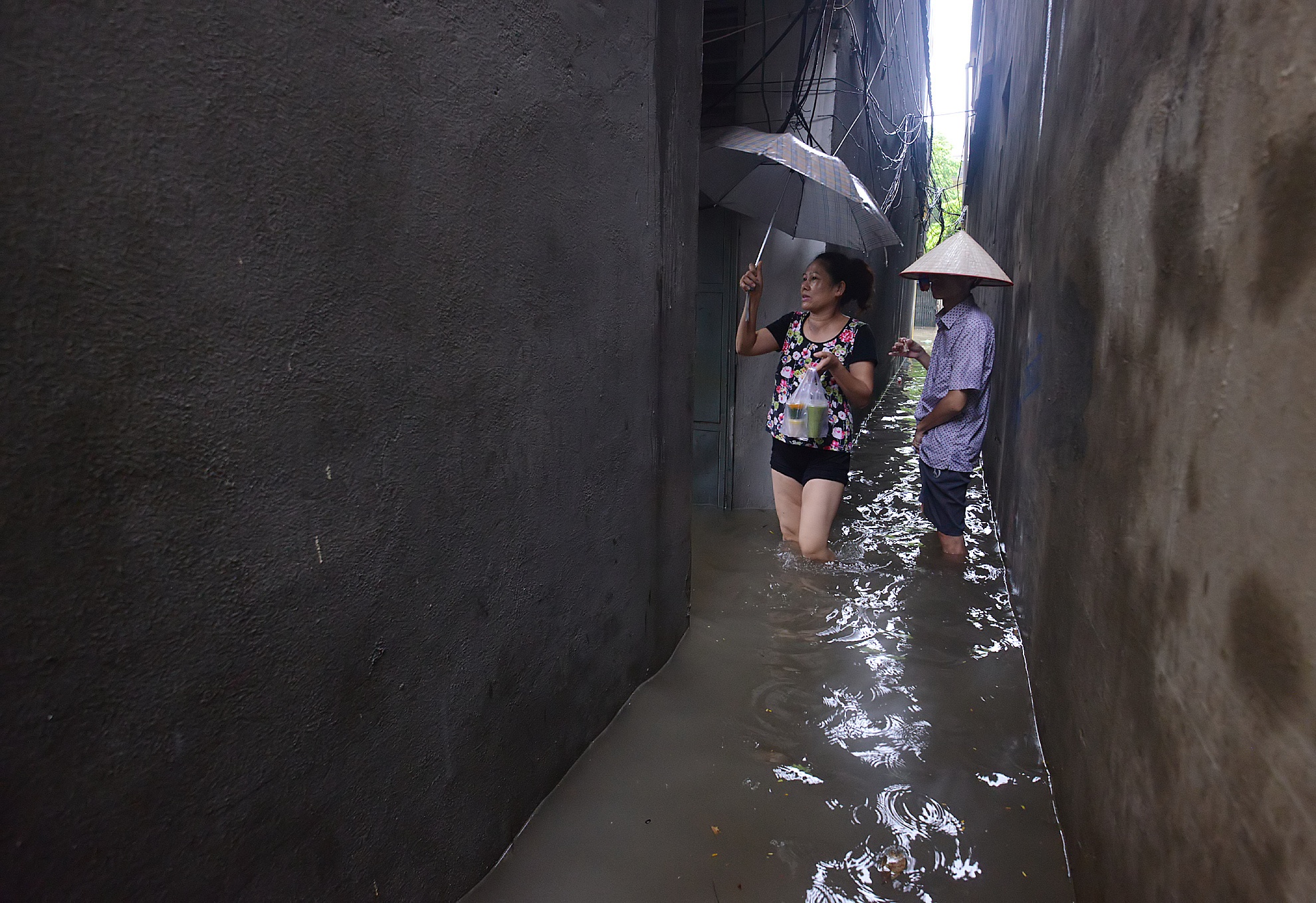Trong khi đó bà Tuyết ngao ngán nhìn ra trước sân nhà. Bà cho biết, một tuần nay khu ngõ nơi bà đang sinh sống bị ngập nặng. "Hệ thống thoát nước khu vực này quá kém", bà than thở.