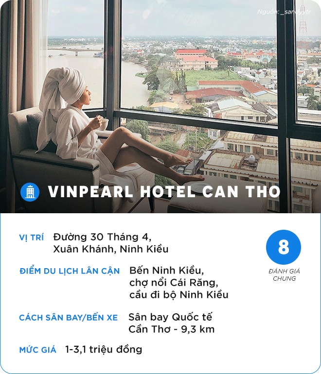Khách sạn có các phòng view sông, bên cạnh đó là nhiều tiện ích, dịch vụ mua sắm, vui chơi giải trí. Các phòng được thiết kế tối giản, hiện đại, cho bạn góc check-in nhìn ra sông Cần Thơ.