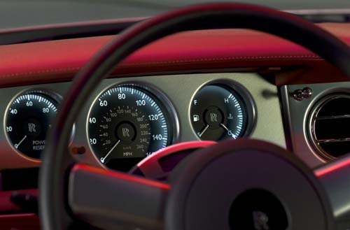Ở hàng ghế trước, ngay trung tâm bảng táp lô là một chiếc đồng hồ kim sang trọng của Rolls-Royce, nhưng khi được gập xuống với một nút bấm, một màn hình cảm ứng 8,8 inch hiển thị sắc nét hiện ra với 8 chức năng được đánh dấu, như hệ thống định vị vệ tinh dẫn đường, kênh truyền hình yêu thích, hay đơn giản là bảng điều khiển kết nối thông minh với điện thoại.