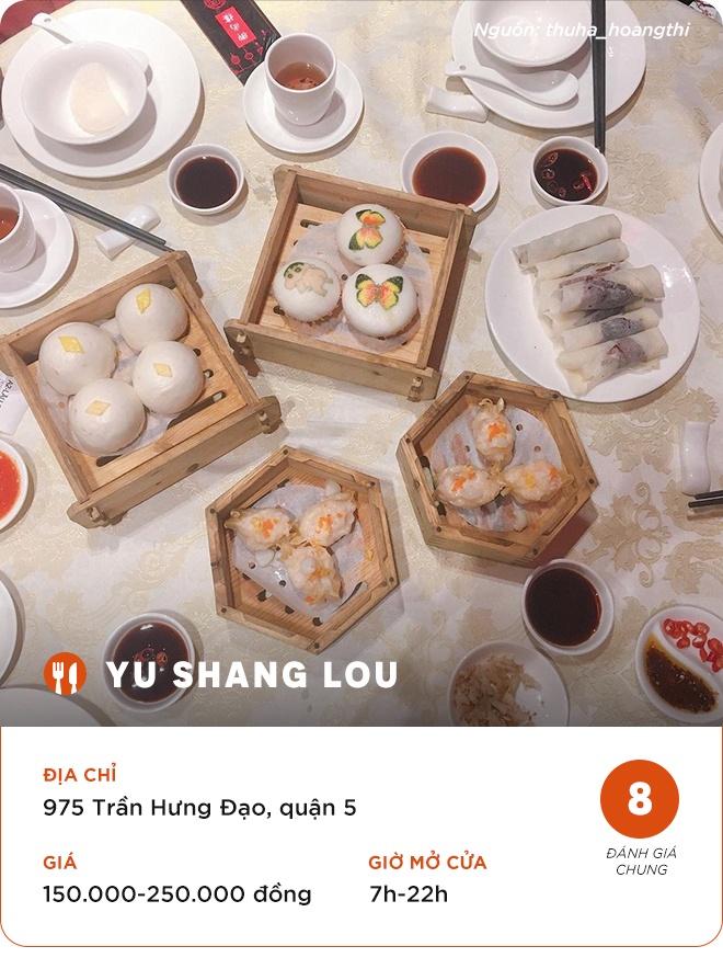 Nếu muốn thưởng thức đồ ăn Hoa trong không gian sang trọng, bạn có thể ghé Yu Shang Lou. Quán nằm trên đường Trần Hưng Đạo thuộc vị trí trung tâm ở quận 5, thuận tiện di chuyển.