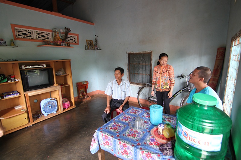 Nhà anh Lê Văn Hương có 4 người, nhưng anh là lao động chính trong nhà. Vợ anh bị bướu ác tính, mất sức lao động. Người con lớn năm nay 13 tuổi bị dị tật do ảnh hưởng chất độc màu da cam, mọi sinh hoạt phải có người giúp đỡ. Anh chị may mắn có cháu thứ 2 khỏe mạnh, năm nay học lớp 10 và luôn nhận được giấy khen cuối năm.