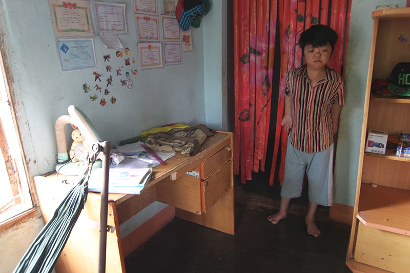 | Một góc học tập của cậu con trai lớn. Trên tường là những tấm bằng khen trong học tập. |