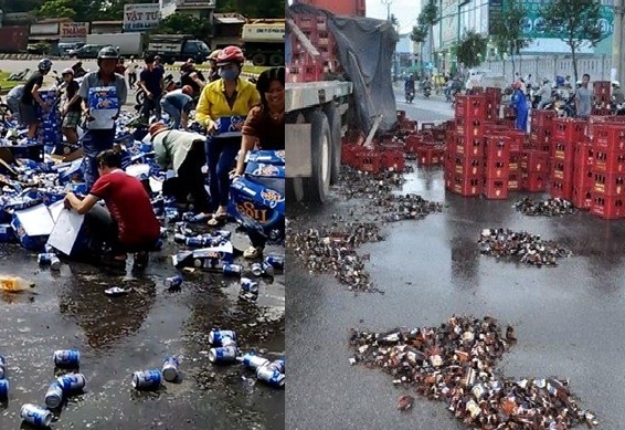 Sự việc xảy ra khi xe tải chở 1.500 thùng bia đi từ TP.HCM ra TP. Phan Thiết, khi đến vòng xoay Tam Hiệp (TP. Biên Hòa) bất ngờ hàng ngàn két bia đổ xuống đường. Hành động hôi bia của người dân bị dư luận lên án, cư dân mạng vẫn tiếp tục quan tâm.