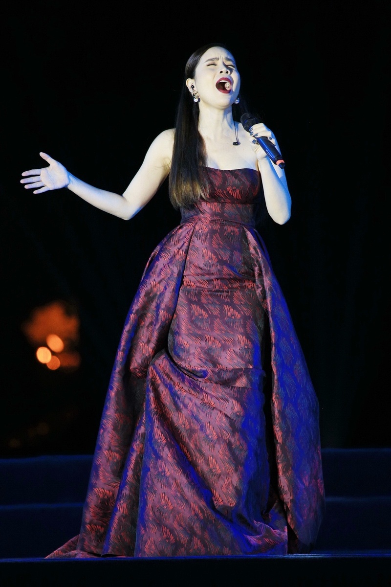 | Tối 29/4, đêm nhạc Bài ca Hòa Bình diễn ra tại khu vực Tượng đài Lý Thái Tổ - Hà Nội. Đây là chương trình chào mừng ngày Giải phóng miền Nam (30/4) và Quốc tế Lao Động (1/5). MC Mỹ Lan đóng vai trò người dẫn chuyện.