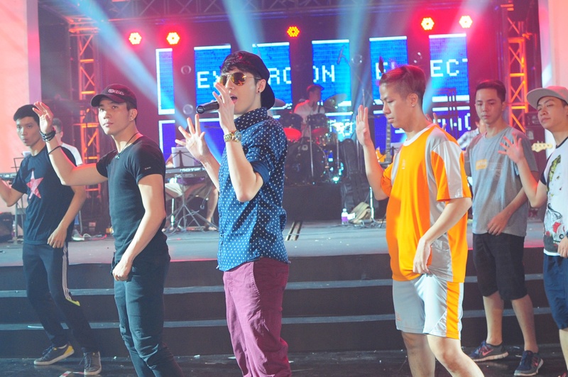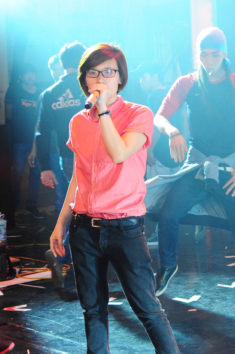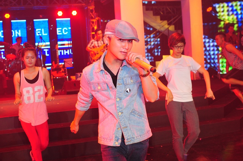 Hoàng Tôn xuống sắc khá nhiều sau The Voice mùa 2. Nam ca sĩ ăn diện phong cách và cá tính hơn. Ngồi cùng anh là Tiên Cookie. |