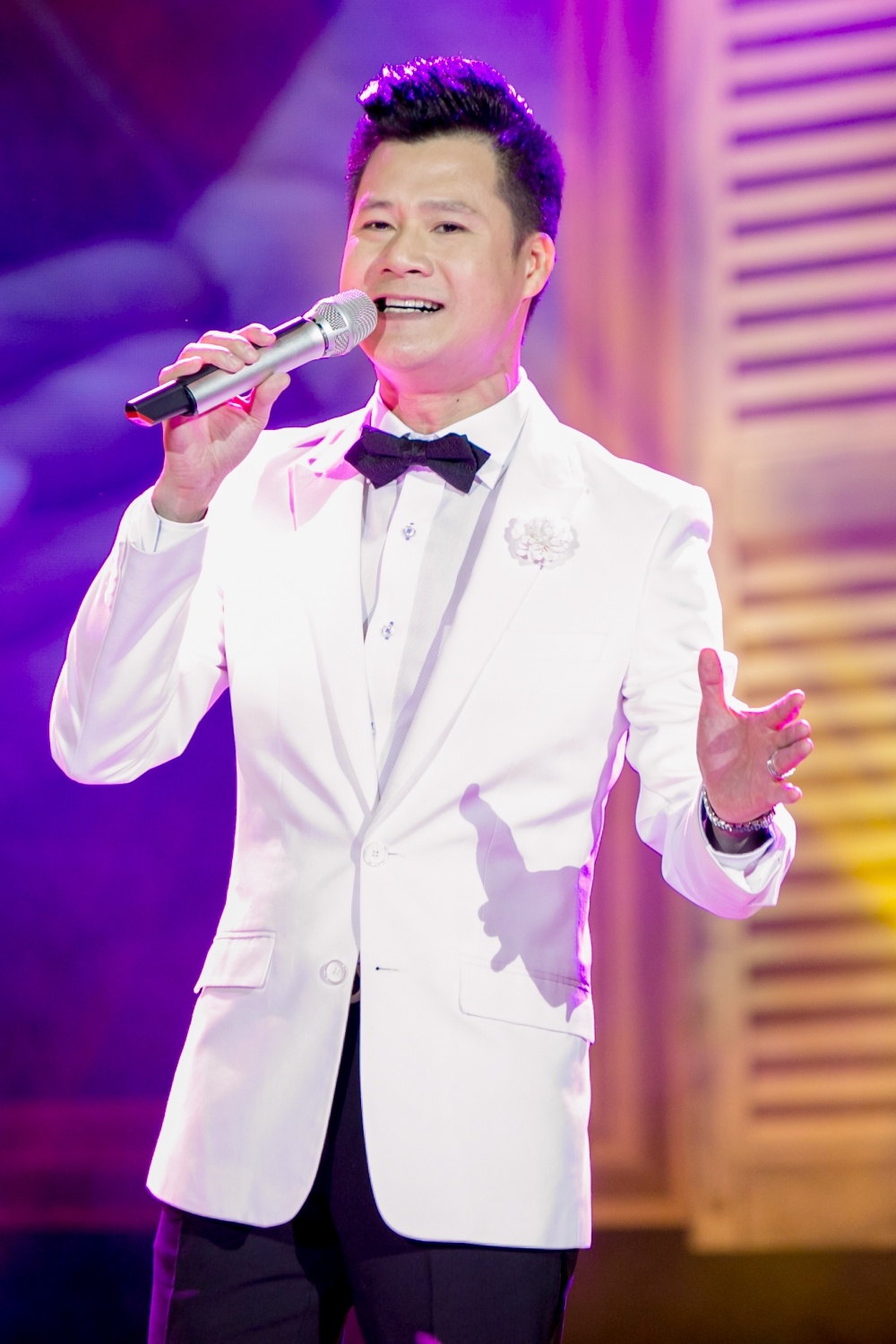 Dù bận rộn với vai trò giám khảo của chương trình âm nhạc nhưng Quang Dũng vẫn nhiệt tình tham gia đêm nhạc Quốc Bảo. |