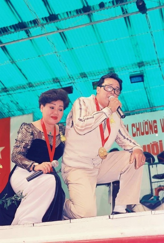 | Hát trong lễ trao giải cùng với NSND Ngọc Giàu. |