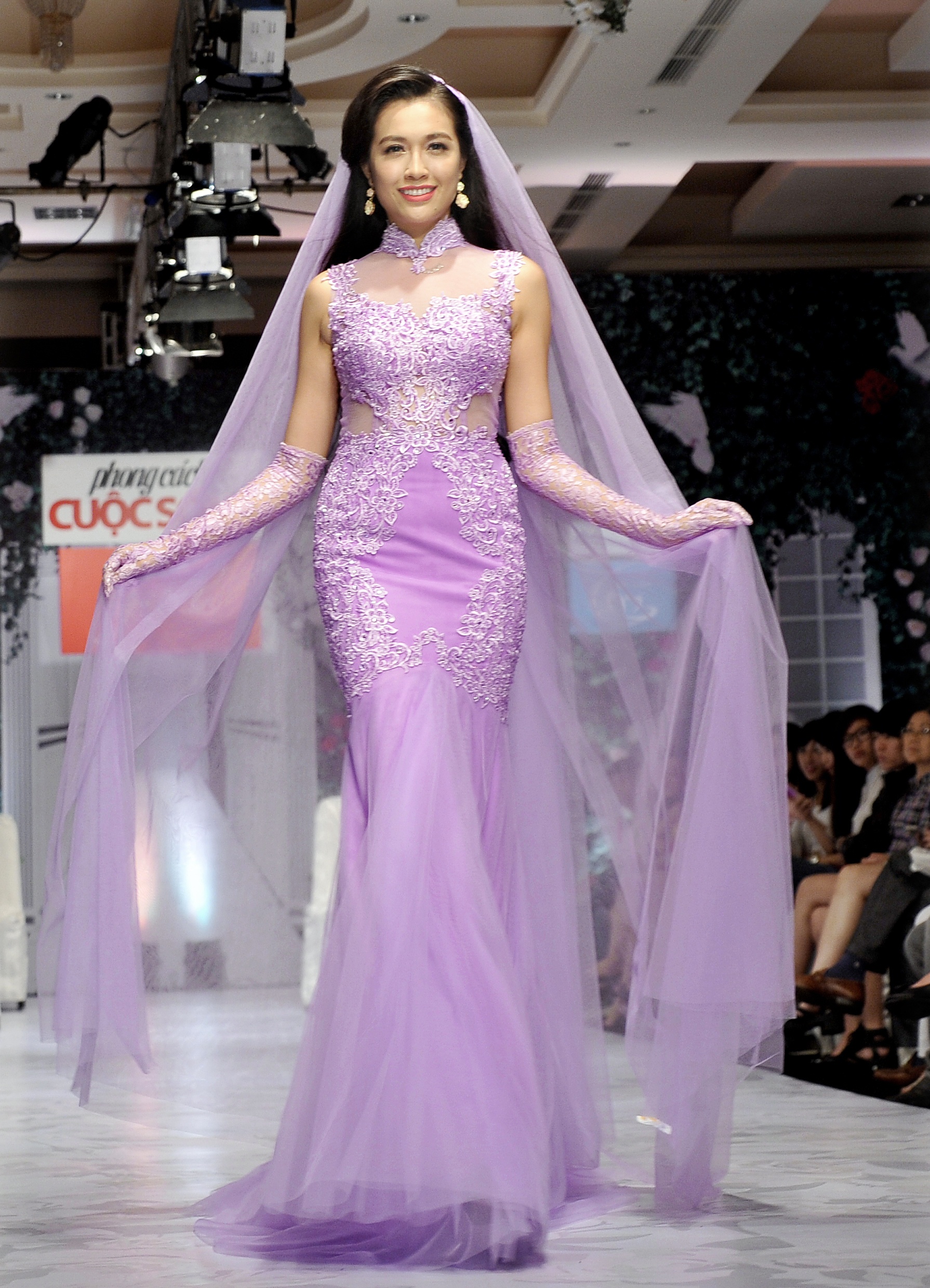 | Á hậu Lệ Hằng rạng ngời trong mẫu thiết kế sắc tím đầy mơ mộng. |