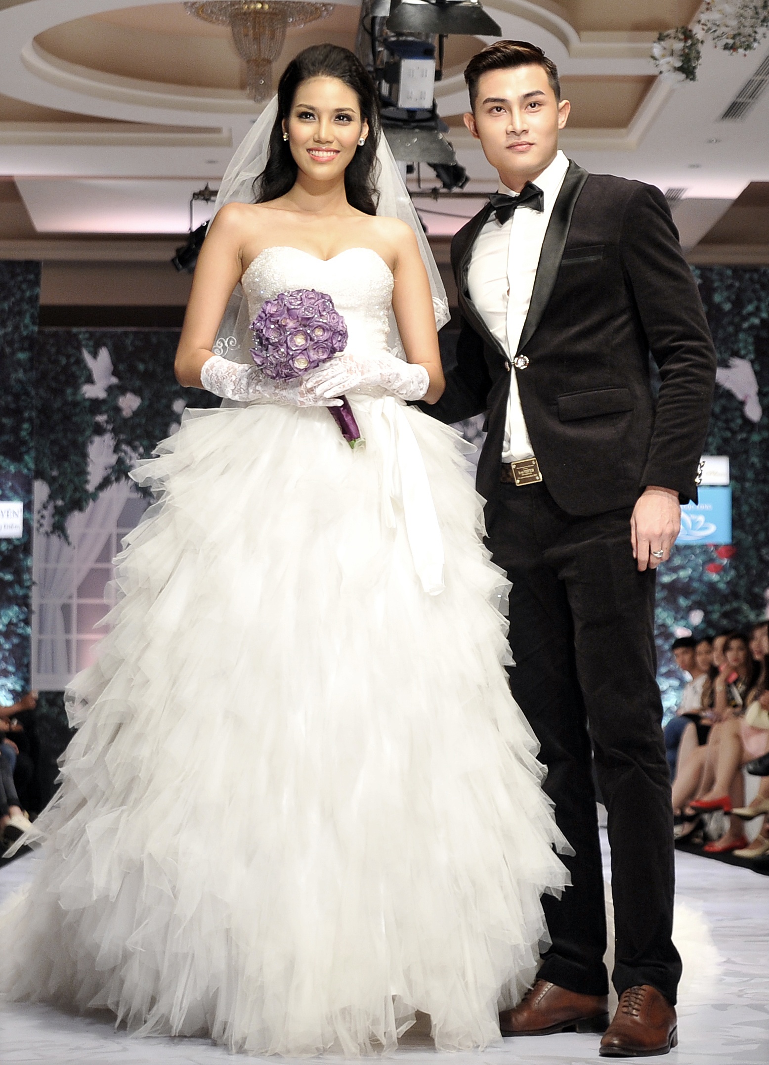| Không chỉ chinh phục phái đẹp bằng những bộ trang phục dạ hội, trong bộ sưu tập mới nhất của NTK Ngọc Long, anh còn mang đến cho các cô gái những mẫu áo cưới sang trọng. |