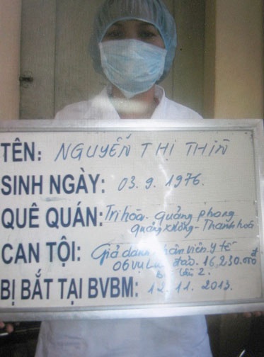 Nhà chức trách xác minh kẻ giả mạo bác sĩ là Nguyễn Thị Thìn, từng có 3 tiền án. Tháng 3/2013, Thìn từng bị nhân viên bảo vệ Bệnh viện Bạch Mai xử lý về hành vi “cò mồi” khám chữa bệnh.