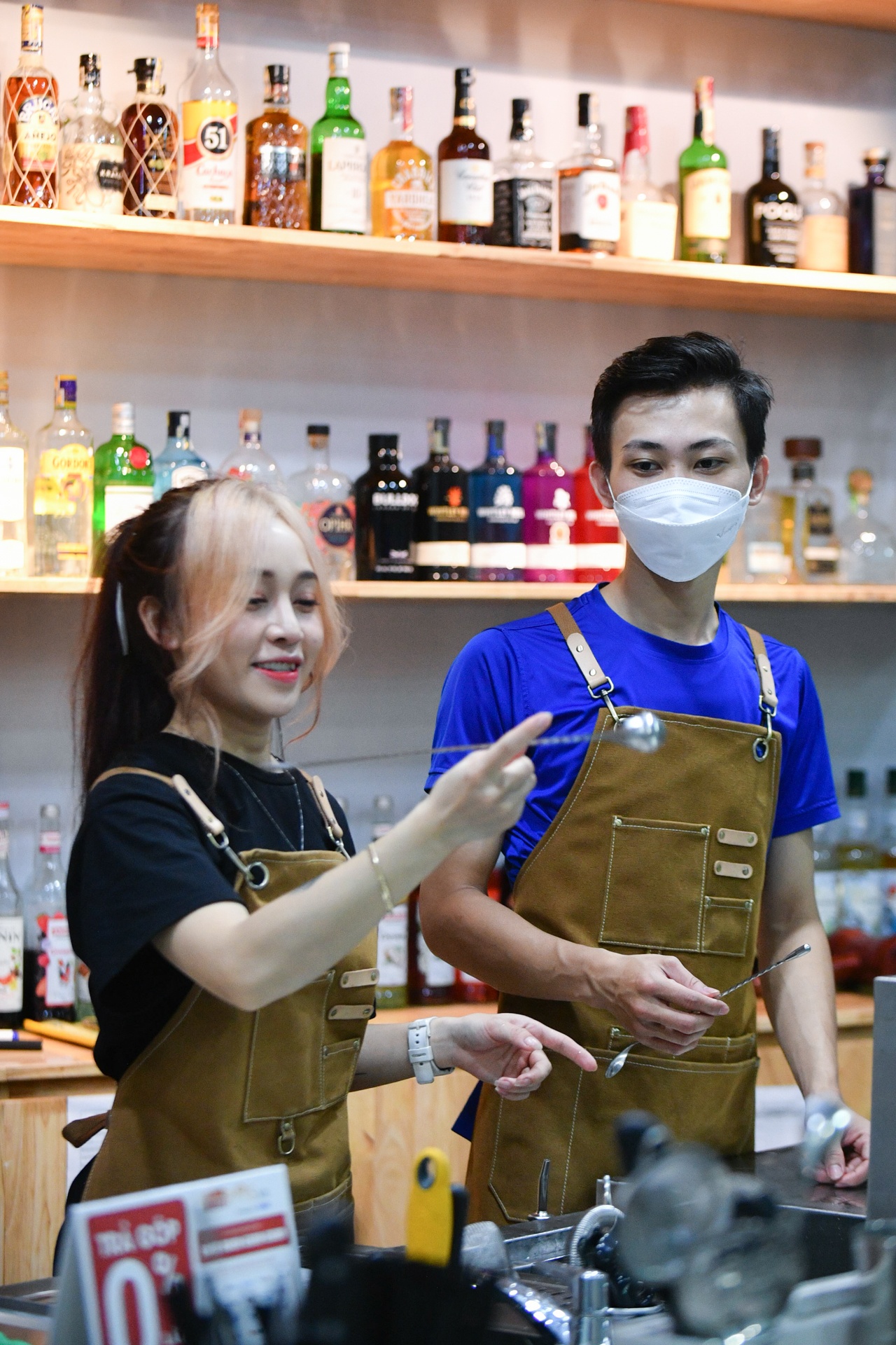 | Những ngày quán bar chưa hoạt động lại, tôi thường đến trung tâm dạy nghề để luyện tập kỹ năng pha chế. Nếu không trau dồi liên tục, bartender rất dễ “quên nghề” và khó bắt nhịp khi đi làm lại. |