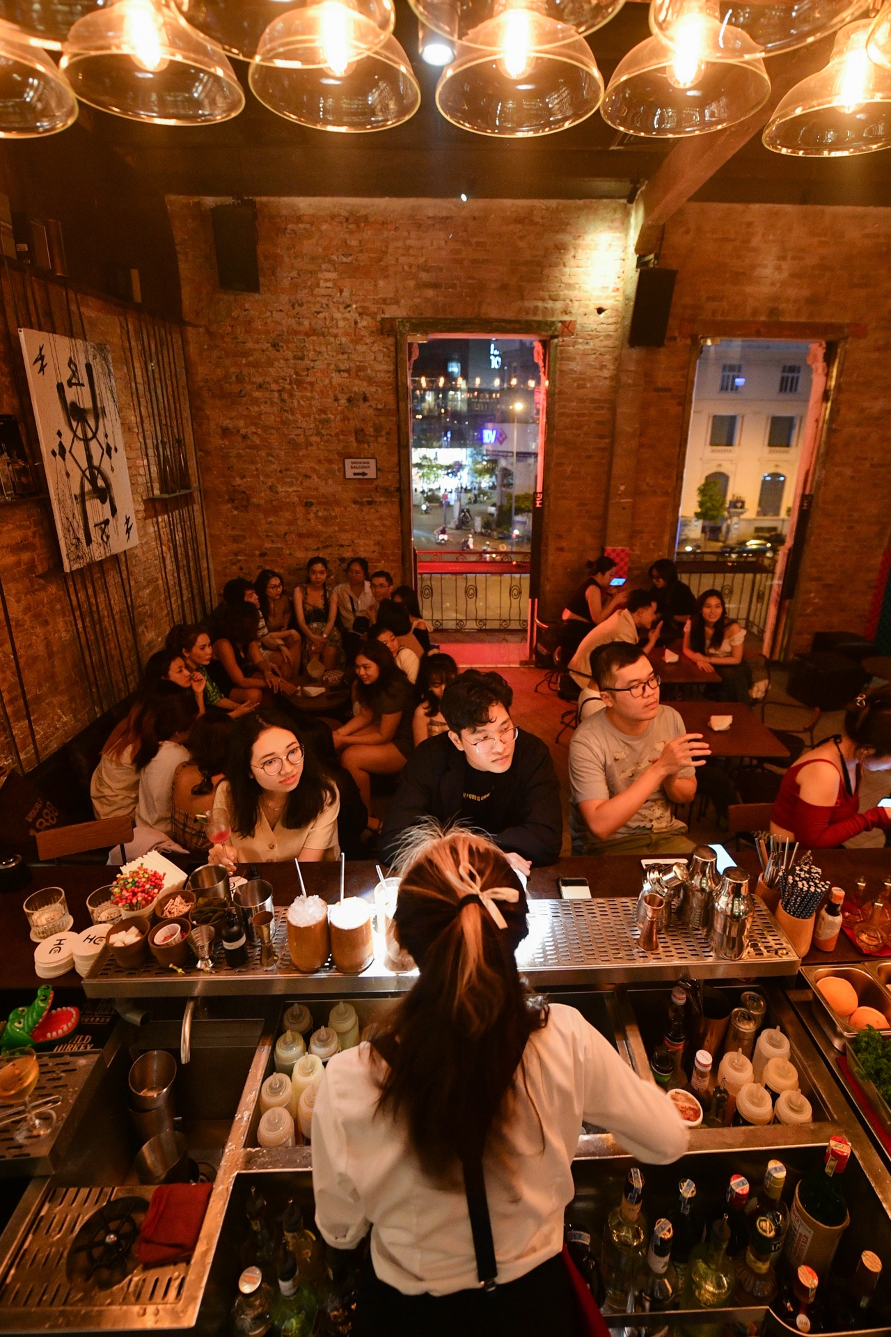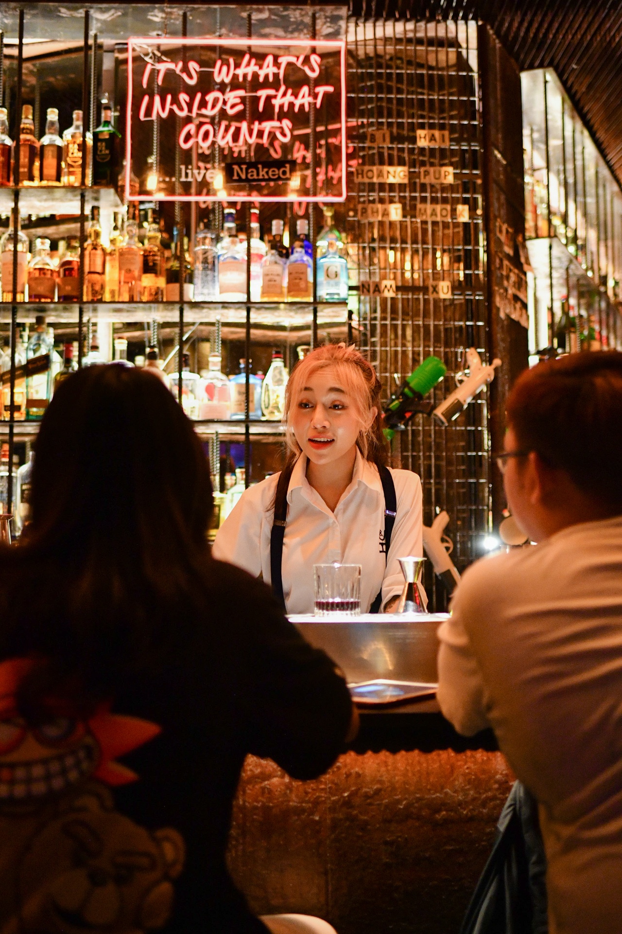 | Nghe tin quán mở lại, một số khách quen đã đặt bàn trước vài ngày để họp mặt bạn bè, thưởng thức cocktail. Nhiều khách đến đây thích ngồi ở quầy bar để giao lưu với bartender. Tôi cũng hay tổ chức trò chơi để khuấy động không khí trong quán. |