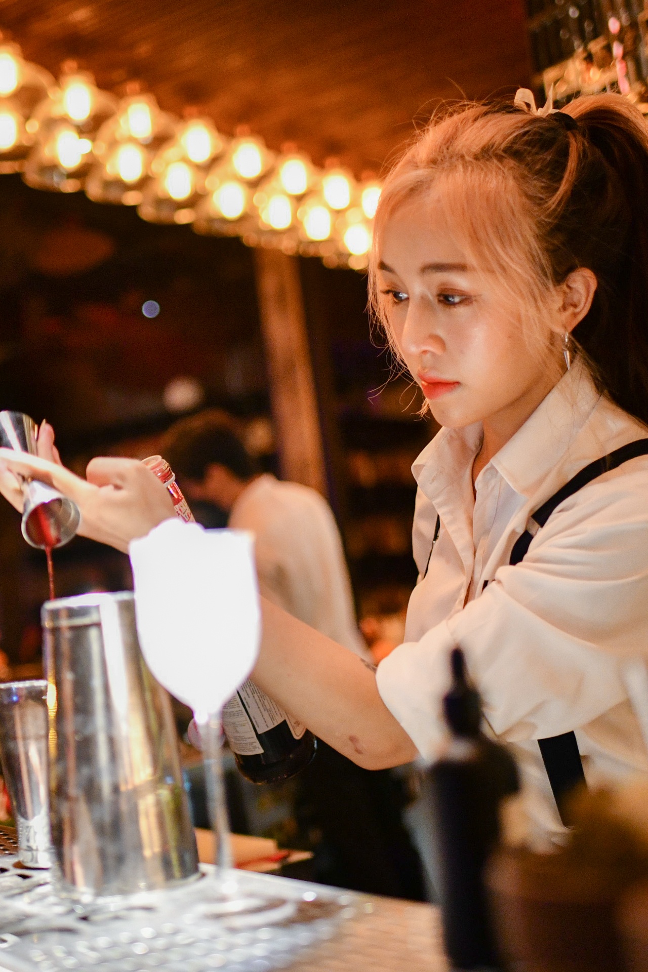 | Khi pha đồ uống cho khách, tôi tập trung cao độ để tạo ra ly nước hoàn hảo. Chỉ cần một chút thay đổi tỷ lệ định lượng của các thành phần cũng khiến cocktail khác mùi vị. |