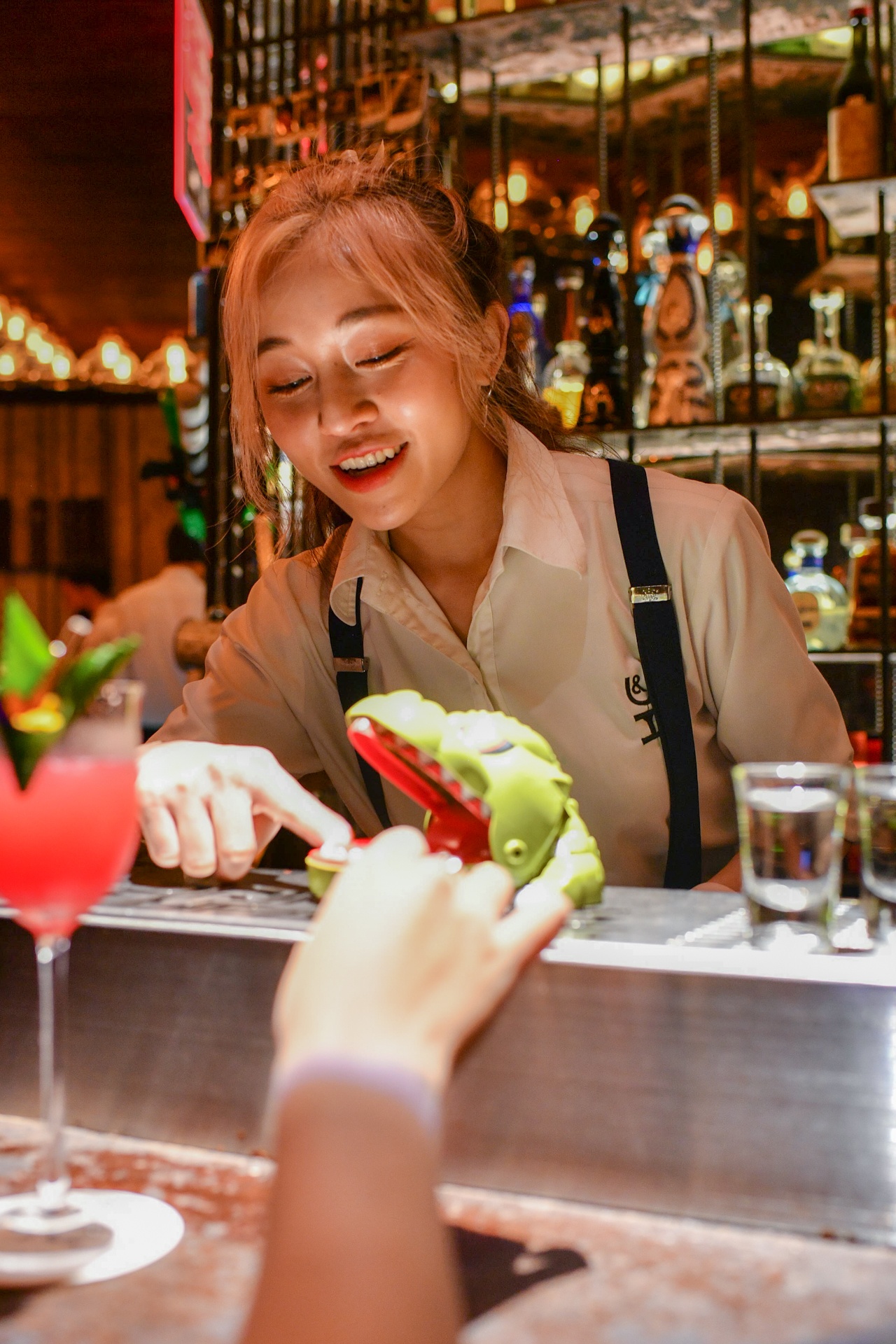 | Để kịp phục vụ thực khách, tôi và 6 bartender khác thay nhau làm việc liên tục. Đôi khi, quán đón nhiều nhóm khách cùng lúc, chúng tôi phải tăng tốc để mọi người không đợi quá lâu. Dù đứng quầy suốt 8-9 tiếng, tôi không thấy mệt mà vẫn giữ được tinh thần thoải mái. |