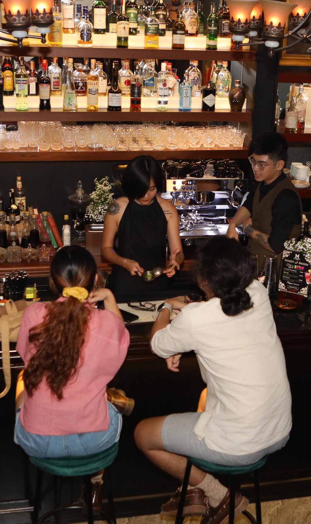 Tôi luôn giữ tinh thần thoải mái trong suốt ca làm, từ 16h đến 24h. Ngoài pha chế, tôi còn chịu trách nhiệm về chất lượng đồ uống chung của quán, đồng thời đào tạo các bạn bartender mới. |