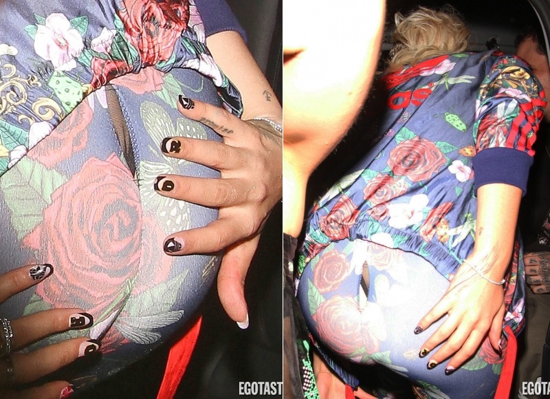 Tuy nhiên, chiếc quần quá bó đã phản chủ, rách toạc khiến Rita Ora để lộ nội y trước hàng loạt ống kính máy ảnh. Sự việc xảy ra khi cô ca sĩ người Anh đang cúi người lên xe, quay lưng lại nên không kịp che chắn, chống đỡ.