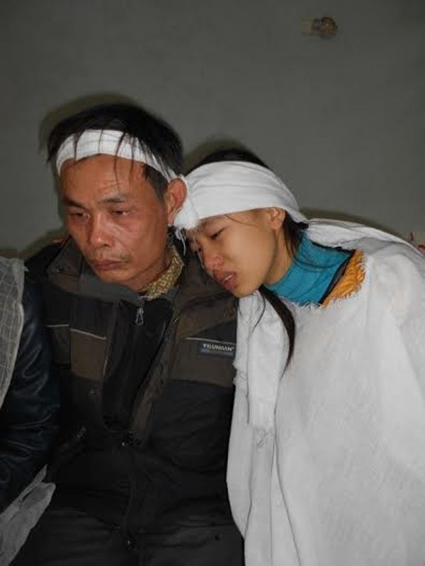 | Anh Thả (chồng chị Hiền) và con gái đau đớn kể lại giây phút đón nhận hung tin. |