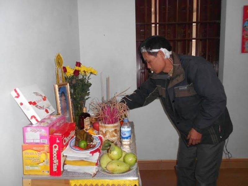 Đặt giữa ngôi nhà cấp bốn, chiếc bàn thờ lập vội cho chị Hiền nghi ngút khói hương và tiếng khóc không thành tiếng của chồng con chị. Ở phía ngoài, nườm nượp khách ra vào hỏi thăm, động viên gia đình, ai ai cũng tỏ lòng thương tiếc và xúc động trước sự việc.