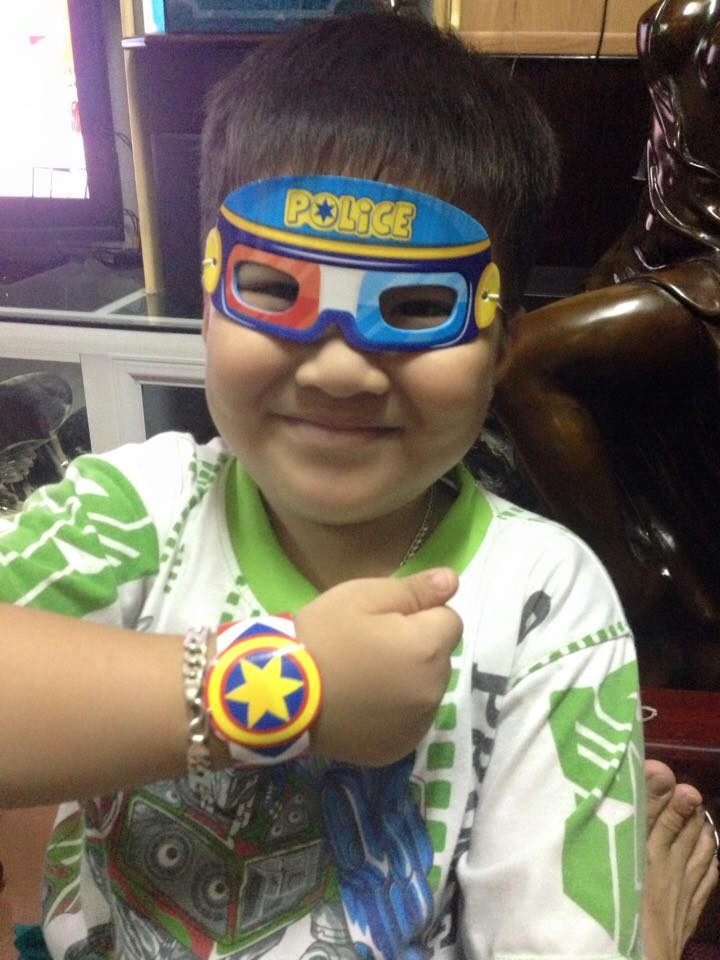 | Hình ảnh Hoàng Long lúc còn khỏe mạnh. Cậu bé hồn nhiên khoe chiếc đồng hồ được tặng trong hộp bánh. Ảnh: Đồng Anh Văn. |