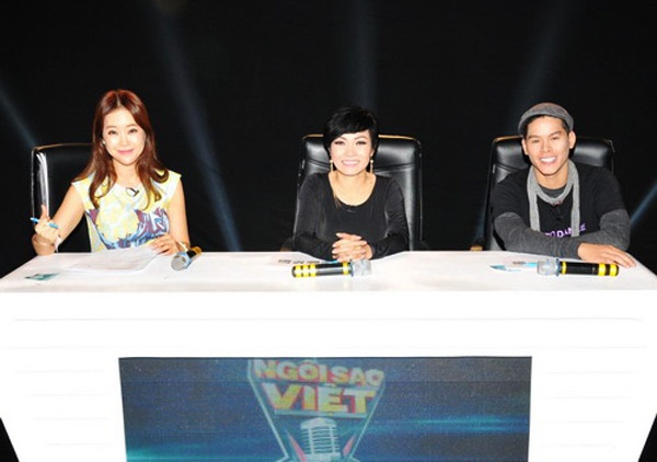 | Baek Ji Young sang Việt Nam ngồi ghế nóng chương trình Ngôi sao Việt cùng Phương Thanh và John Huy Trần. |