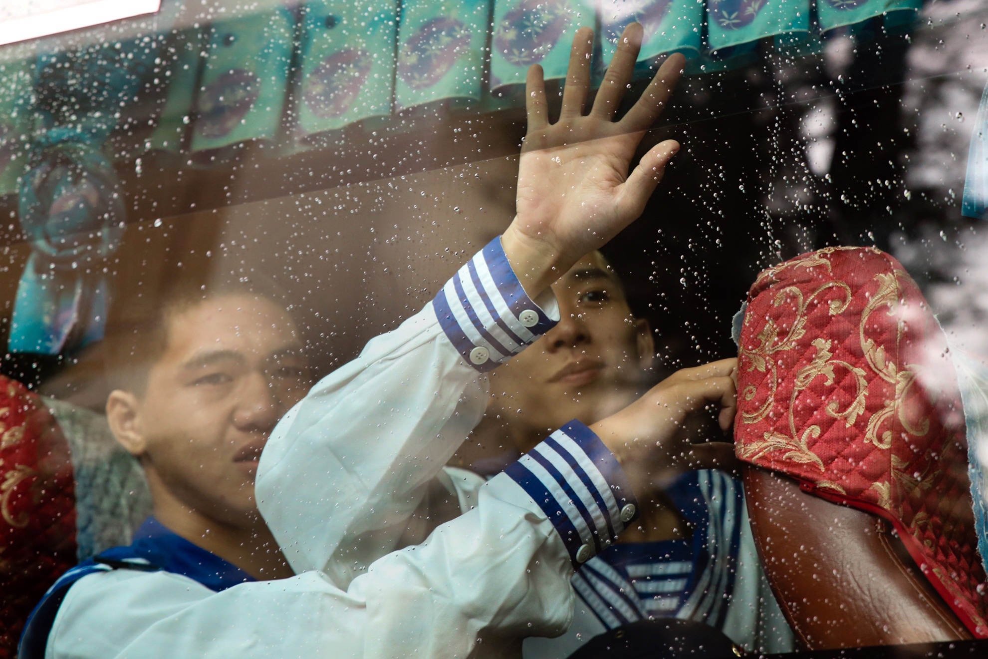 Nhiều tân binh vừa lên xe đã không giấu được niềm xúc động, lưu luyến vẫy tay chào người thân. Sau 18 tháng tại quân ngũ, các quân nhân sẽ được giáo dục, rèn luyện về phẩm chất đạo đức, học tập lý luận chính trị, huấn luyện quân sự, rèn luyện kỹ năng, khả năng sẵn sàng chiến đấu và rèn luyện tác phong quân nhân. Kể từ 2016, thời gian tại ngũ sẽ nâng lên thành 24 tháng. Ảnh: Hải An.