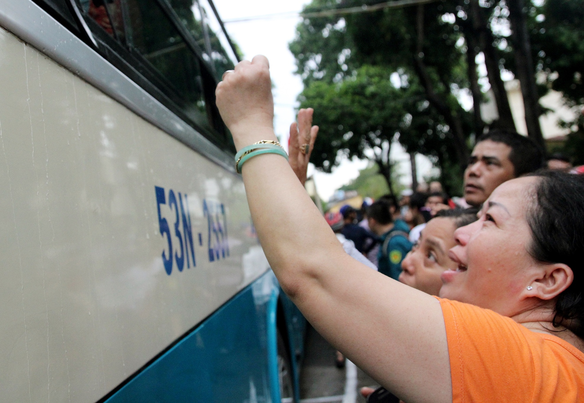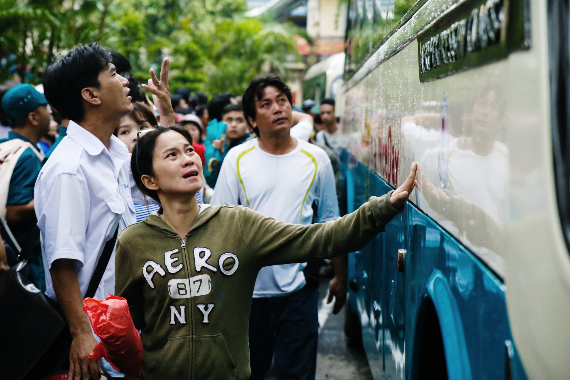 Khi các tân binh lên xe về đơn vị, các gia đình lưu luyến chạy theo. Ảnh: Hải An.